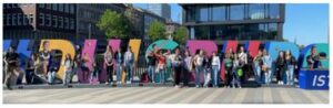 Foto: Aalto Kinder- und Jugendchor vor Duisburg-Schriftzug